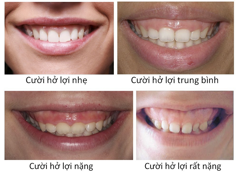 • Môi trên ngắn, lực co vòng môi lớn khiến cho môi bị kéo lên cao hơn bình thường làm lộ nướu quá mức.